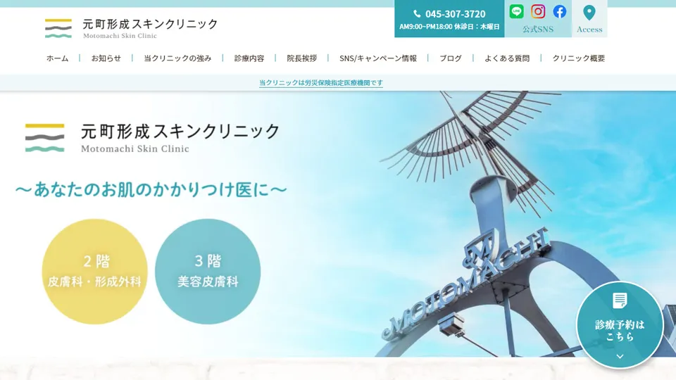 元町形成スキンクリニック 様|開院前 告知用サイト(ティザーサイト)